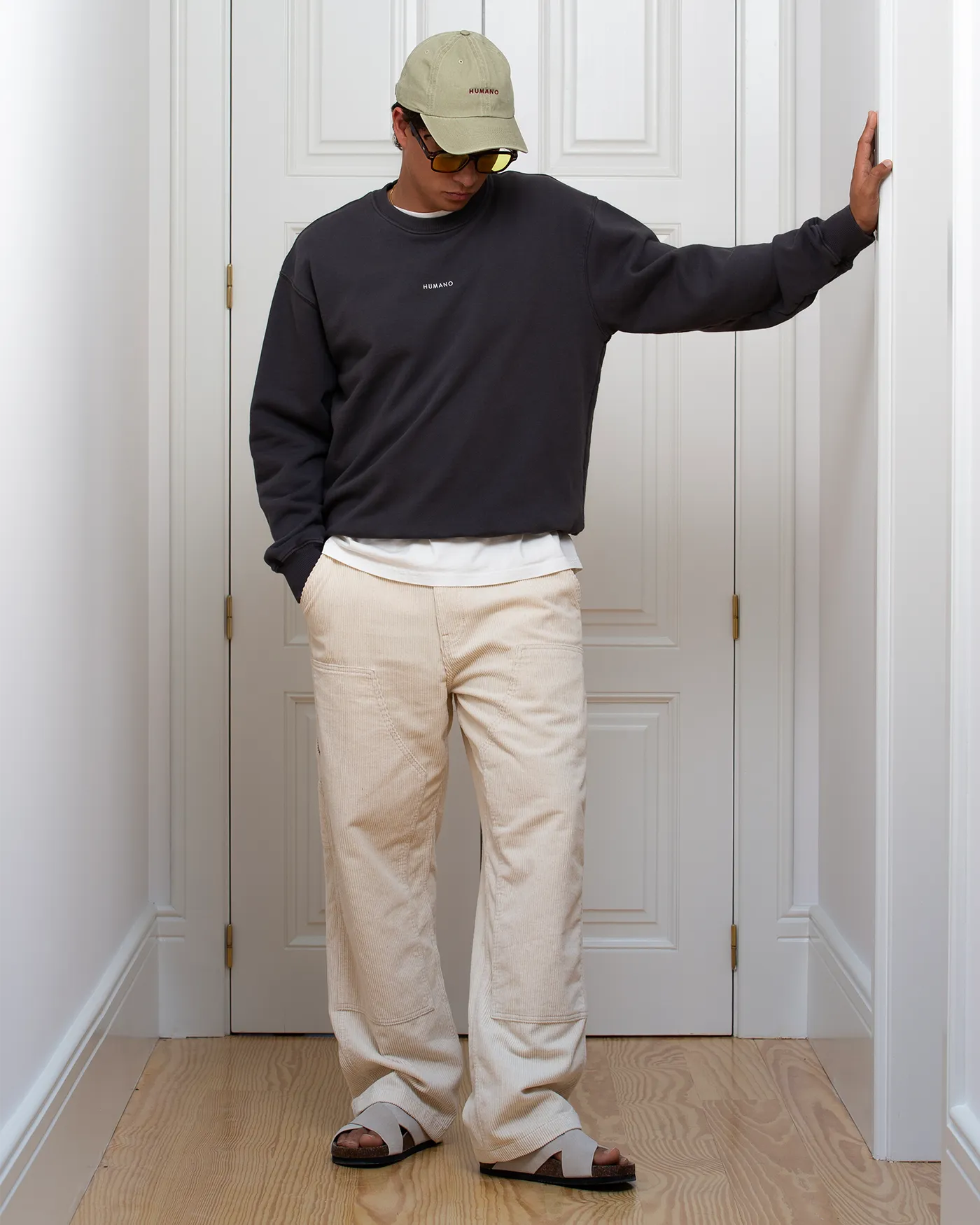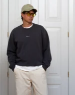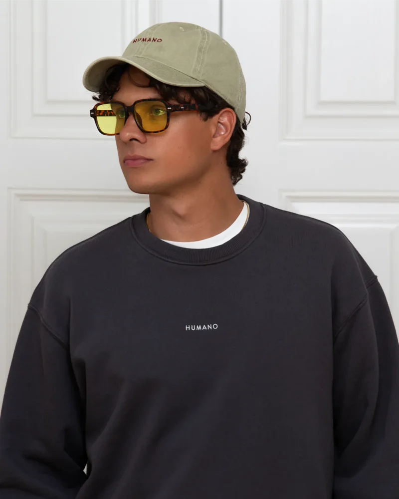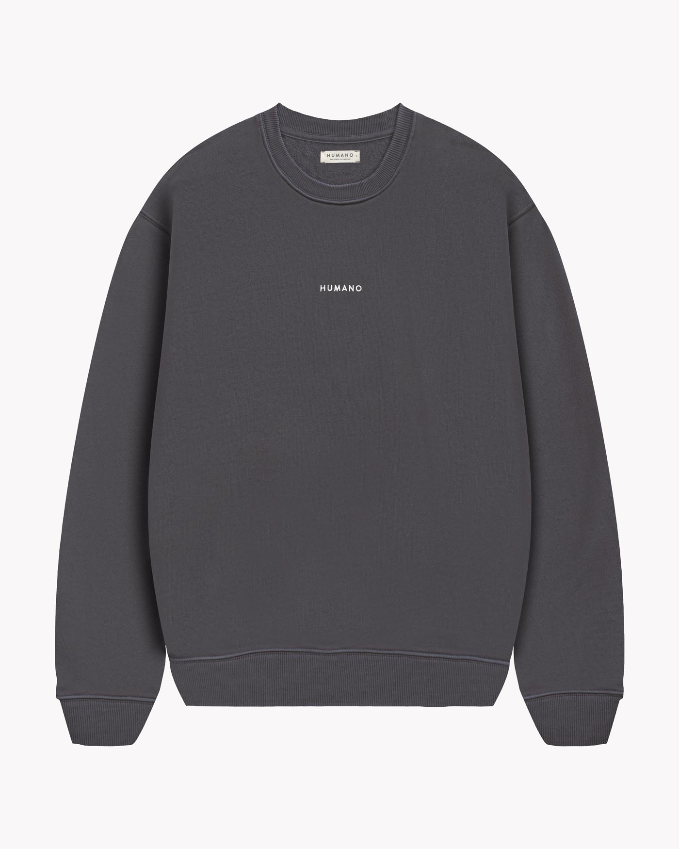 The nicest crewneck sweatshirt. Designed to be worn all year round, this sweatshirt is made with 100% GOTS certified organic cotton diagonal fleece (380g/sqm). It features our Minimalist Humano embroidery on the chest.